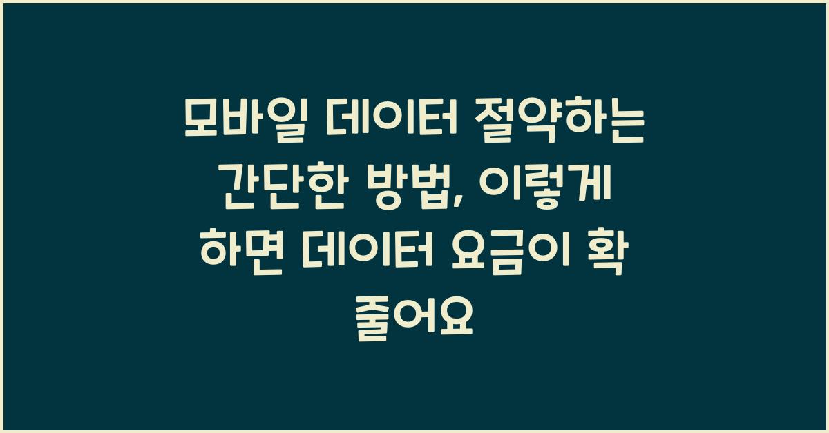 모바일 데이터 요금이 매달 줄어들지 않고 오히려 늘어나는 기분이시죠? 저도 과거에 비슷한 경험을 겪었습니다. 데이터 요금 청구서를 보고 기겁하며, '내가 왜 이렇게 썼지?'라는 생각을 한 적이 많습니다. 그래서 제가 직접 실천한 모바일 데이터 절약하는 간단한 방법을 공유하고자 합니다. 이 방법으로 여러분도 데이터를 현명하게 관리할 수 있습니다!