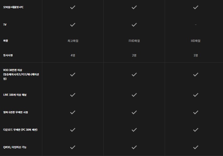 - 이용기기: 모바일 + 태블릿 + PC + TV