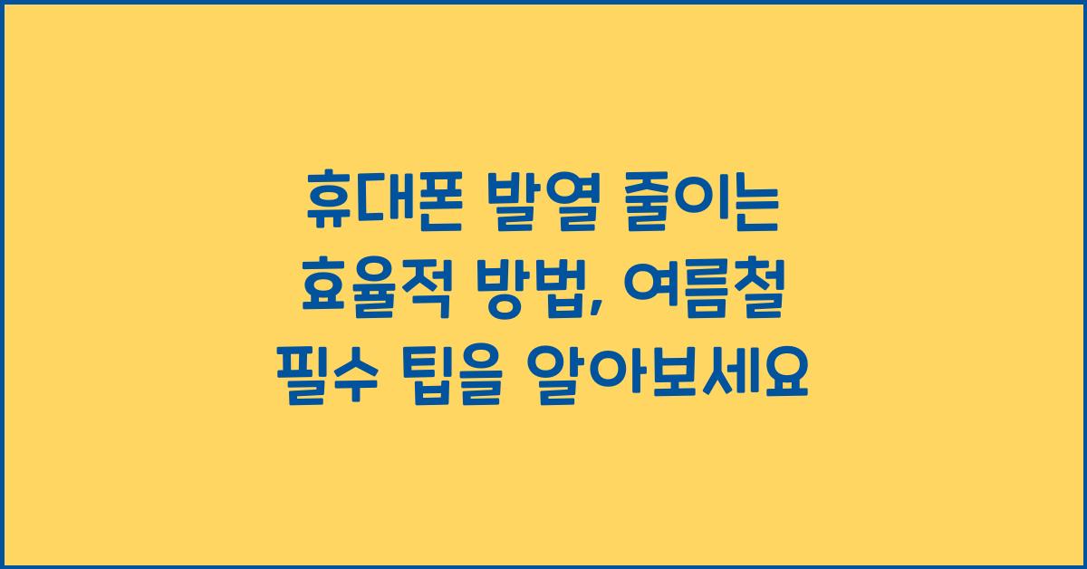 휴대폰 발열 줄이는 효율적 방법, 여름철 필수 팁을 알아보세요